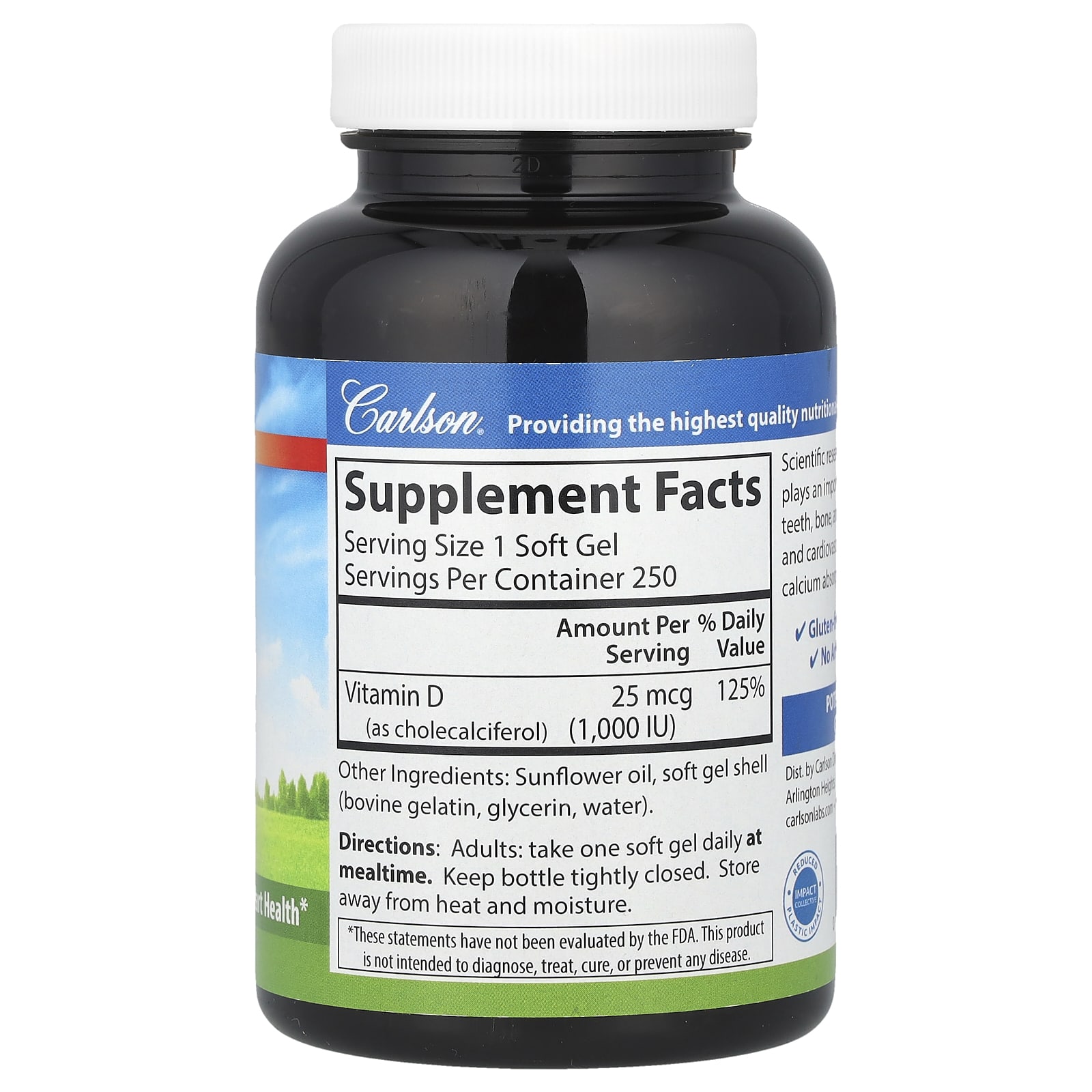 Carlson Vitamina D3 1.000 UI (25 mcg) 250 Cápsulas Softgel – Carlson Suplementos Vitaminas Vitamina D.