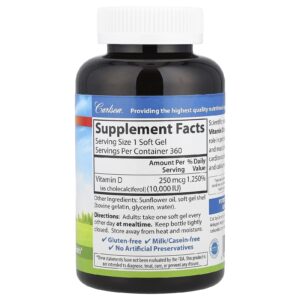 Carlson Vitamina D3 10.000 UI (250 mcg) 360 Cápsulas Softgel – Carlson Suplementos Vitaminas Vitamina D.