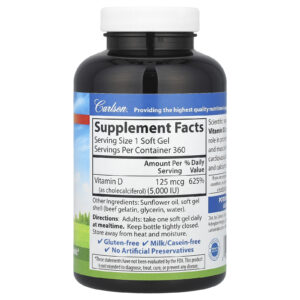 Carlson Vitamina D3 125 mcg (5.000 UI) 360 Cápsulas Softgel – Carlson Suplementos Vitaminas Vitamina D.