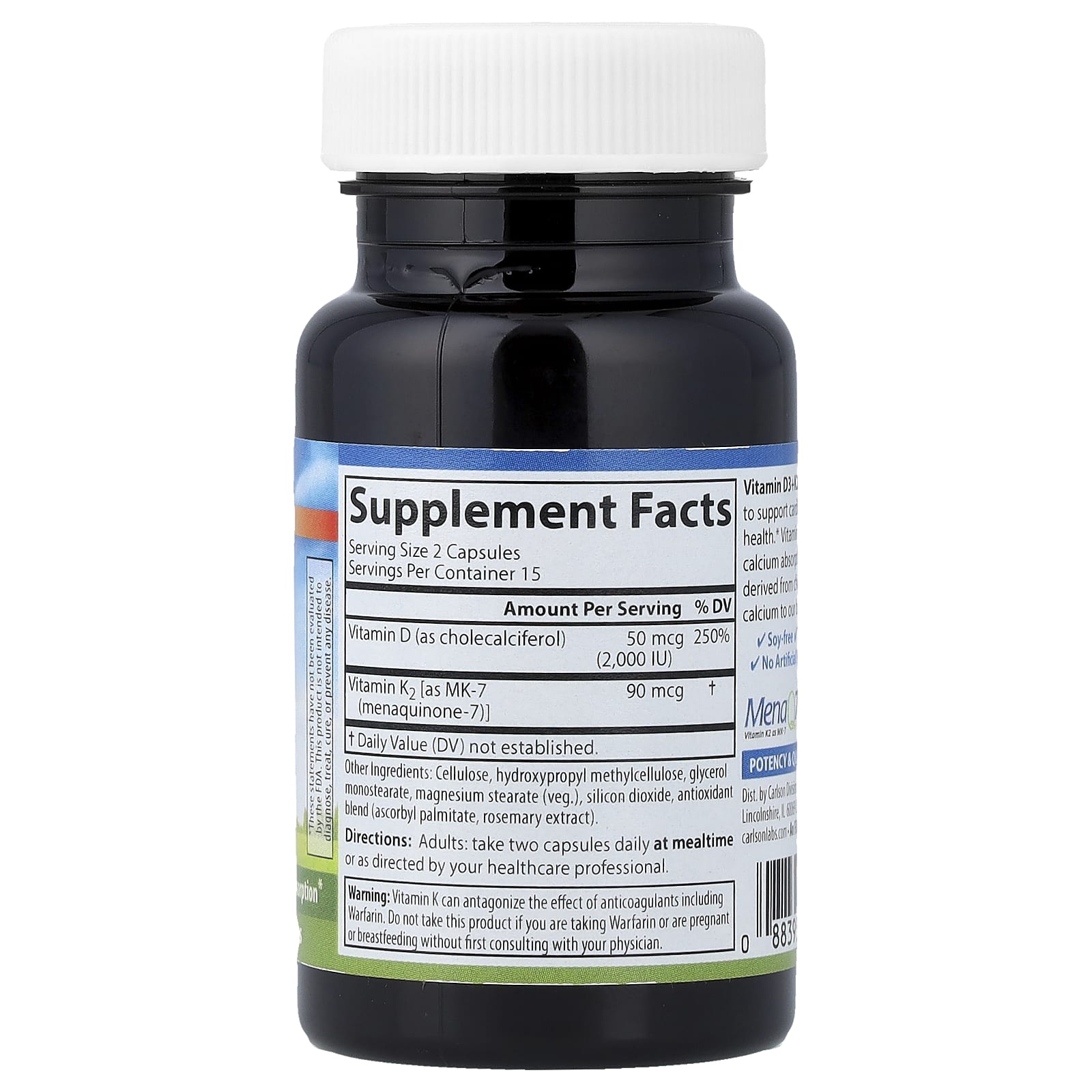 Carlson Vitaminas D3 + K2 30 Cápsulas Vegetarianas – Carlson Suplementos Vitaminas Vitamina D3 e K2 Vitamina K.