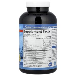Carlson Wild Norwegian Gemas de Óleo de Fígado de Bacalhau Baixo Teor de Vitamina A Limão Natural 300 Cápsulas Softgel – Carlson Suplementos Ômegas e Óleos de Peixe (EPA/DHA) Óleo de Fígado de Bacalhau.