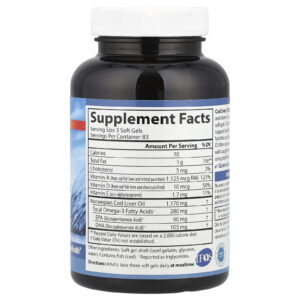 Os Minis de Óleo de Fígado de Bacalhau fornecem 280 mg de ômega-3 e vitaminas A e D3 em cápsulas softgel pequenas e fáceis de engolir. Os benéficos ômega-3 EPA e DHA contribuem para a função cardiovascular e cognitiva saudável e promovem uma visão saudável. Os Minis de Óleo de Fígado de Bacalhau são obtidos do bacalhau selvagem da mais alta qualidade do Ártico, na costa da Noruega, usando métodos tradicionais e sustentáveis.