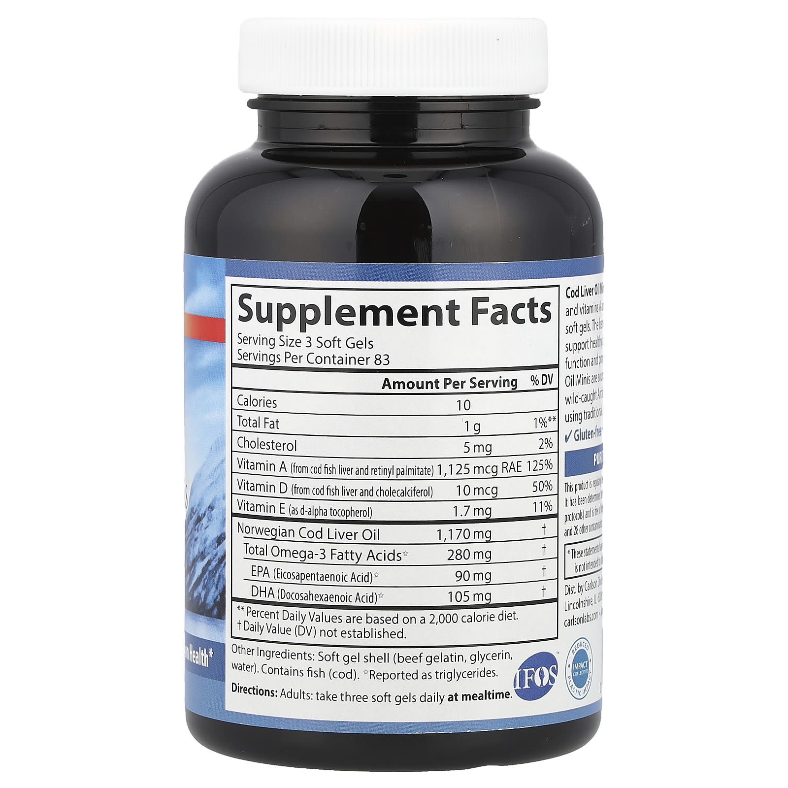 Carlson Wild Norwegian Minis de Óleo de Fígado de Bacalhau 250 Minicápsulas Softgel – Carlson Suplementos Ômegas e Óleos de Peixe (EPA/DHA) Óleo de Fígado de Bacalhau.