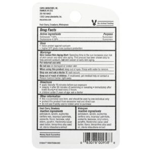 | Cereja Fresca, Morango: petrolato, lanolina, cera de Euphorbia cerifera, palmitato de isopropila, ozocerita, flavorizante, cera de abelha, ésteres cetílicos, parafina, manteiga da semente de Theobroma cacao, óleo da semente de Limnanthes alba, extrato de Stevia rebaudiana. | |