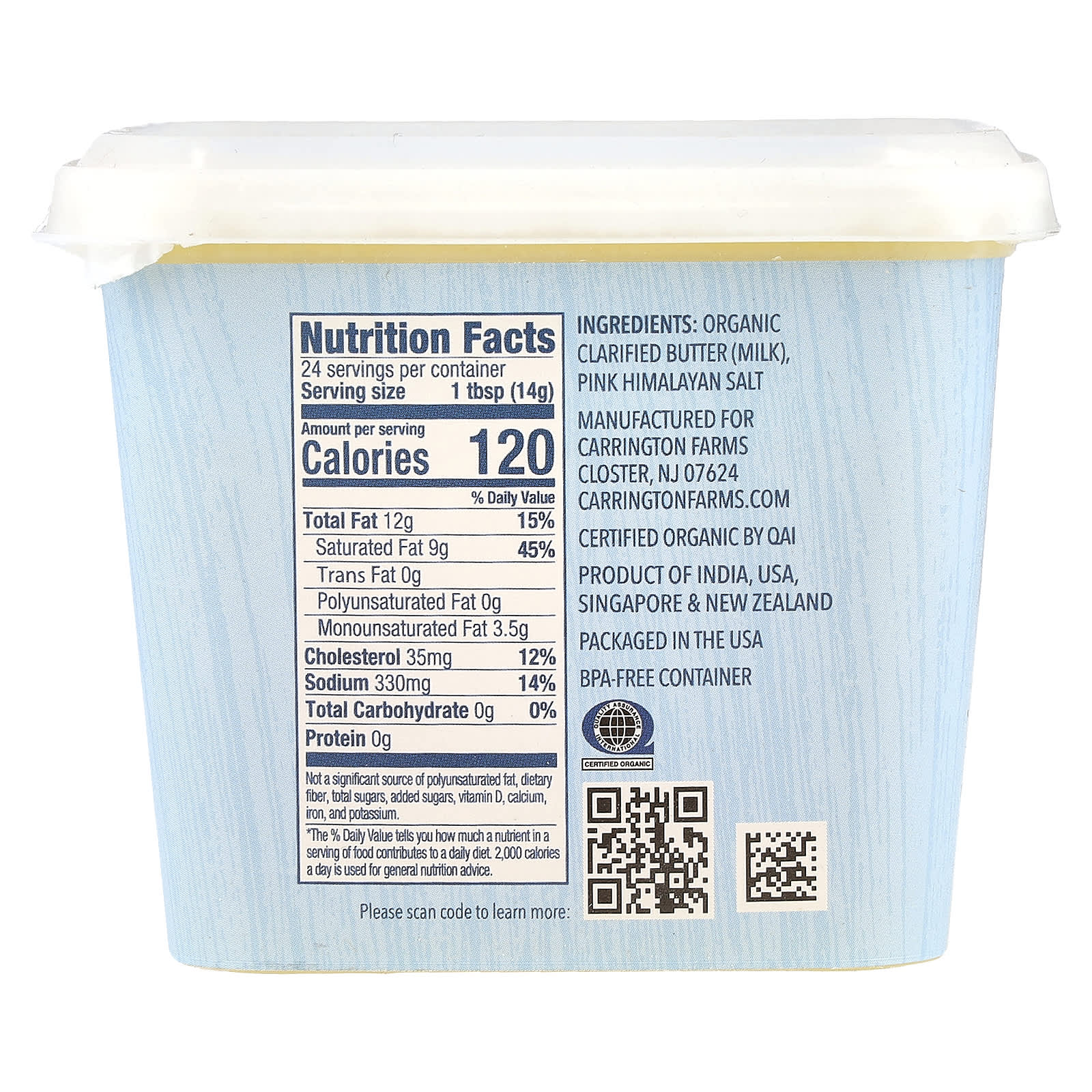 Carrington Farms Ghee Orgânico com Sal Rosa do Himalaia Gado Criado no Pasto 355 ml (12 fl oz) – Carrington Farms Alimentos Óleos e vinagres Ghee.