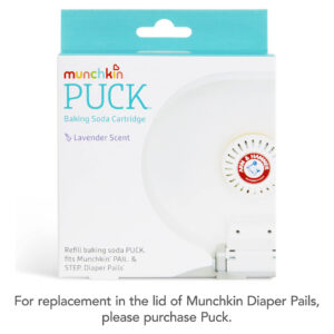 Munchkin Arm & Hammer Puck Baking Soda Cartridge, Lavender Scent – Pre filled deodorizing disc with Arm and Hammer lavender scented baking soda – Compatible with the STEP (model number 15901) and PAIL (model number 15900) diaper pails (not compatible with the original diaper pail, model number 10600) – Replace every 60 to 90 days for freshest results – Can be used almost anywhere in garbage cans, diaper bags, and more