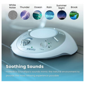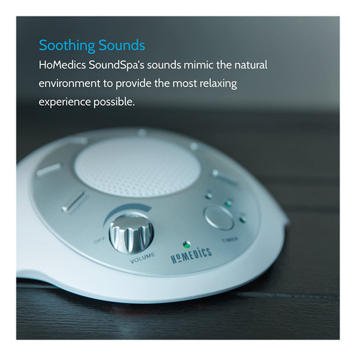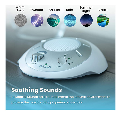 White Noise Sound Machine Portable Sleep Therapy for Home , Office , Baby & Travel 6 Relaxing & Soothing Nature Sounds , Battery or Adapter Charging Options , Auto-Off Timer HoMedics Sound Spa