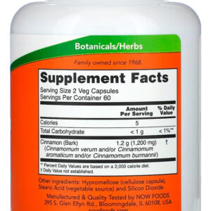Casca de Canela 600mg Now Foods 120 Cáps Importado