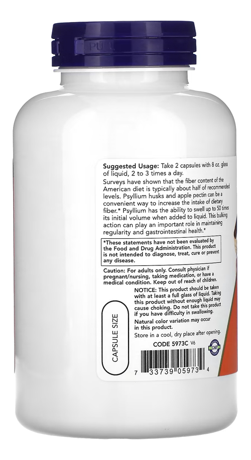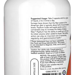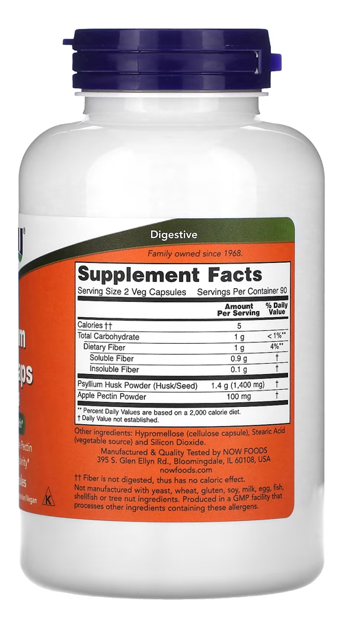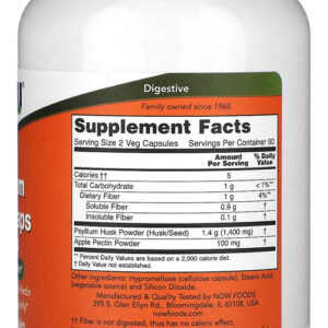Casca Psyllium 700mg + Pectin Now Foods 180Cap Produto Importado