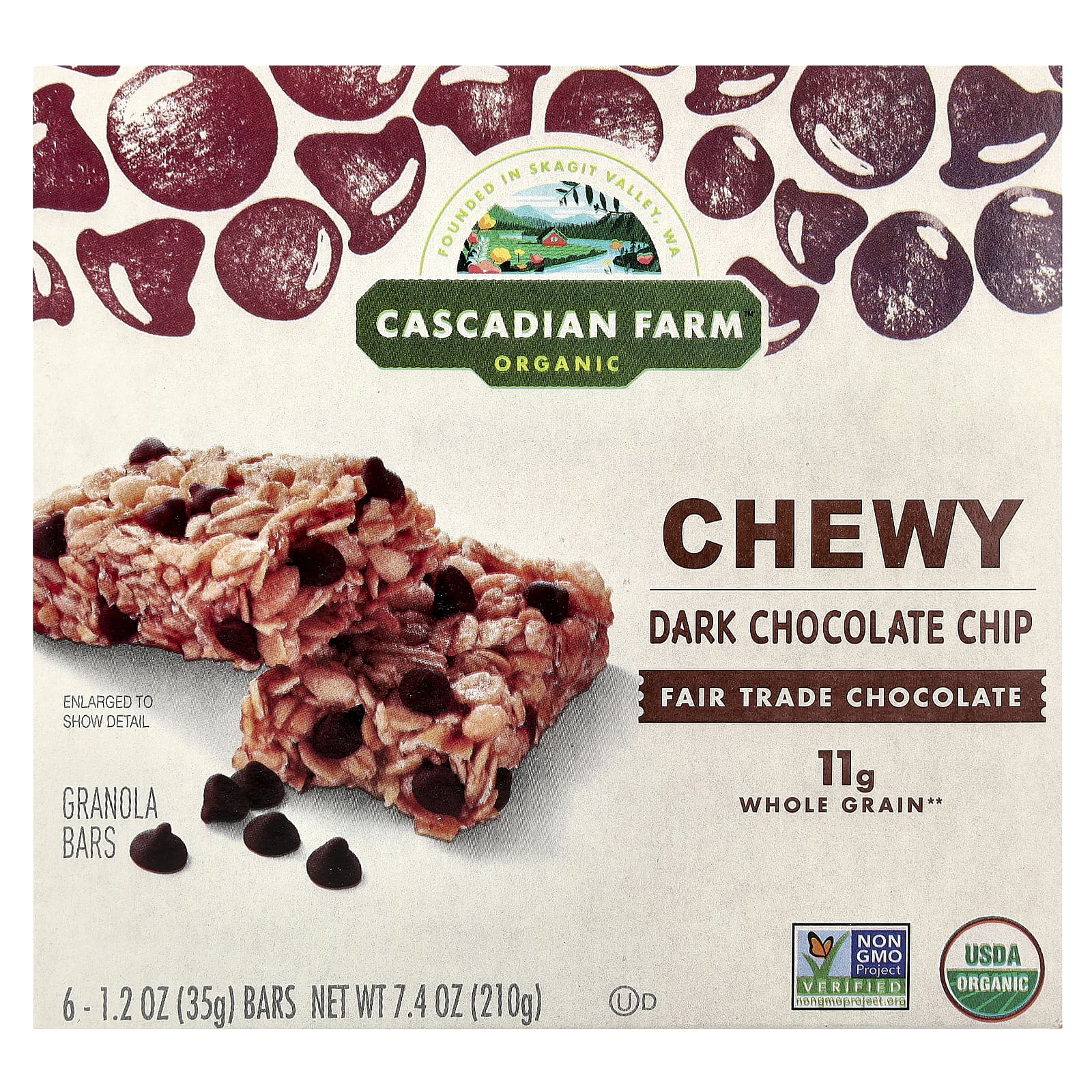 Cascadian Farm Barras de Granola Orgânicas Mastigáveis Gotas de Chocolate Amargo 6 Barras 35 g (12 oz) Cada – Cascadian Farm Alimentos Barras.