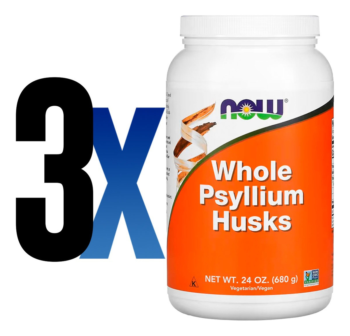 Cascas De Psyllium Inteiras 608g Importado 3un Now Foods