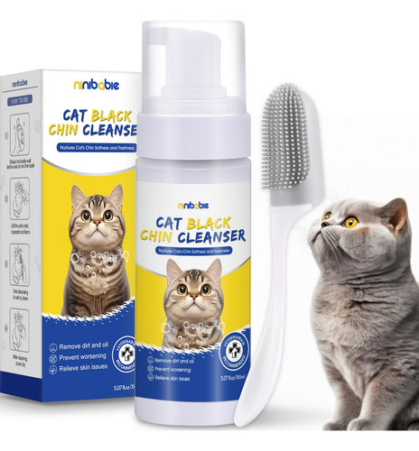 Tratamento de queixo para acne Ninibabie Cat, limpador de sementes pretas para gatos, melhora a saúde da pele, remoção de cravos e escova de limpeza atualizada, alivia a acne no queixo, controla o óleo de 5,07 fl.oz