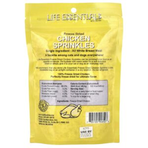 O Granulado de Frango Liofilizado da Life Essentials pode ser polvilhado sobre os alimentos como um estimulante do apetite. Coloque água morna para preparar um lanche tenro e delicioso ou simplesmente dê a seu gato ou cachorro como uma guloseima diária.