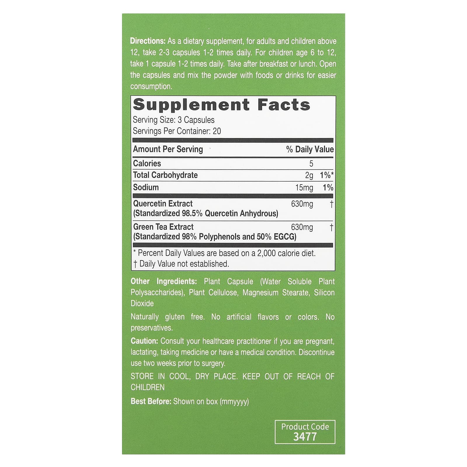 Uma combinação de Quercetina de alta potência e Extrato de Chá Verde de folhas de chá verde premium, fornece uma alta concentração de Bioflavonoides, Polifenóis e EGCG, que são poderosos antioxidantes que fornecem propriedades antibacterianas e ajudam a aumentar a imunidade, aliviar o desconforto respiratório e reforçar a saúde das células pulmonares. O efeito sinérgico da combinação desses 2 ingredientes acelera os suportes à saúde pulmonar e à imunidade e torna a formulação superior às outras.