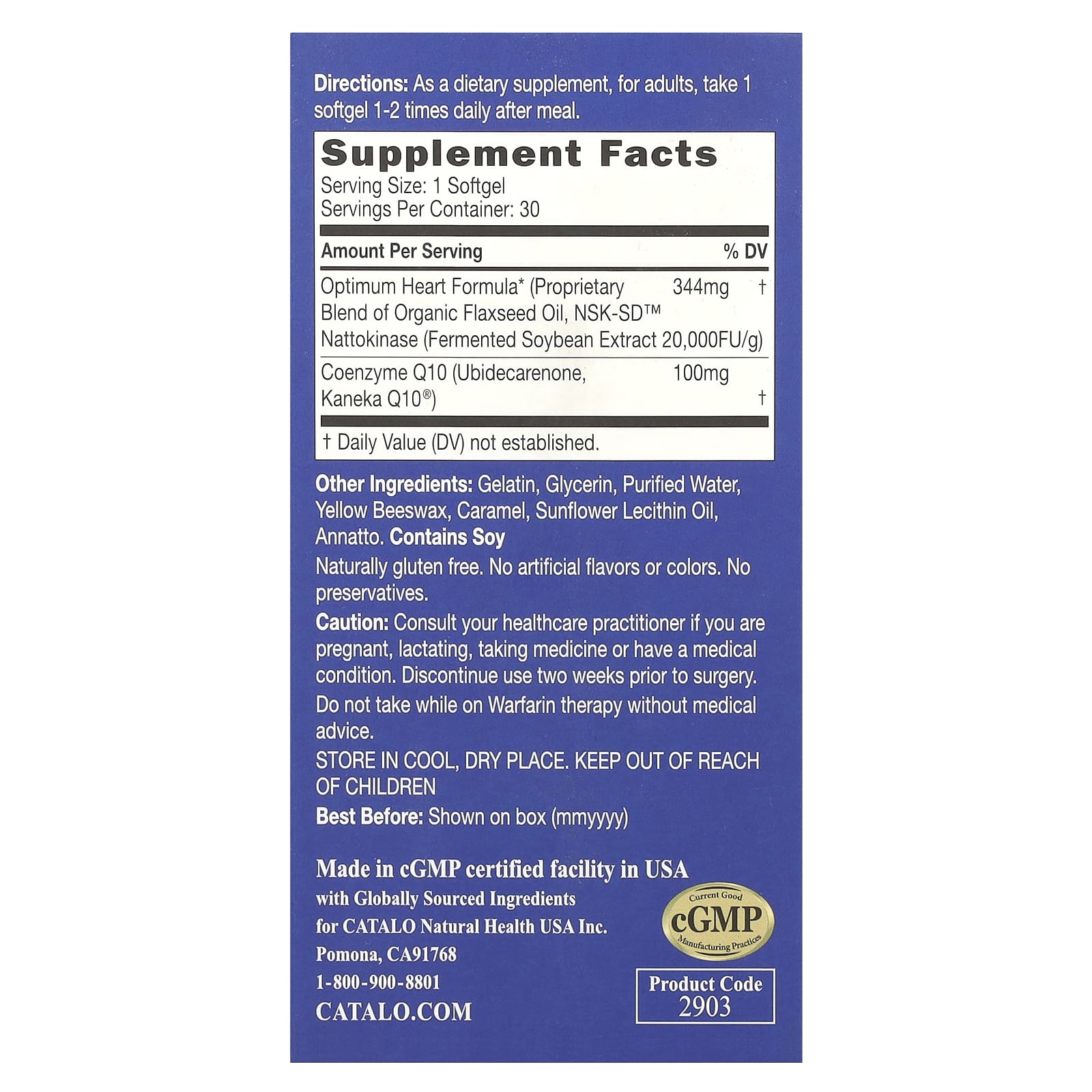 CATALO Fórmula Extra de CoQ10 para o Coração com Nattoquinase e Óleo de Linhaça 30 Cápsulas Softgel