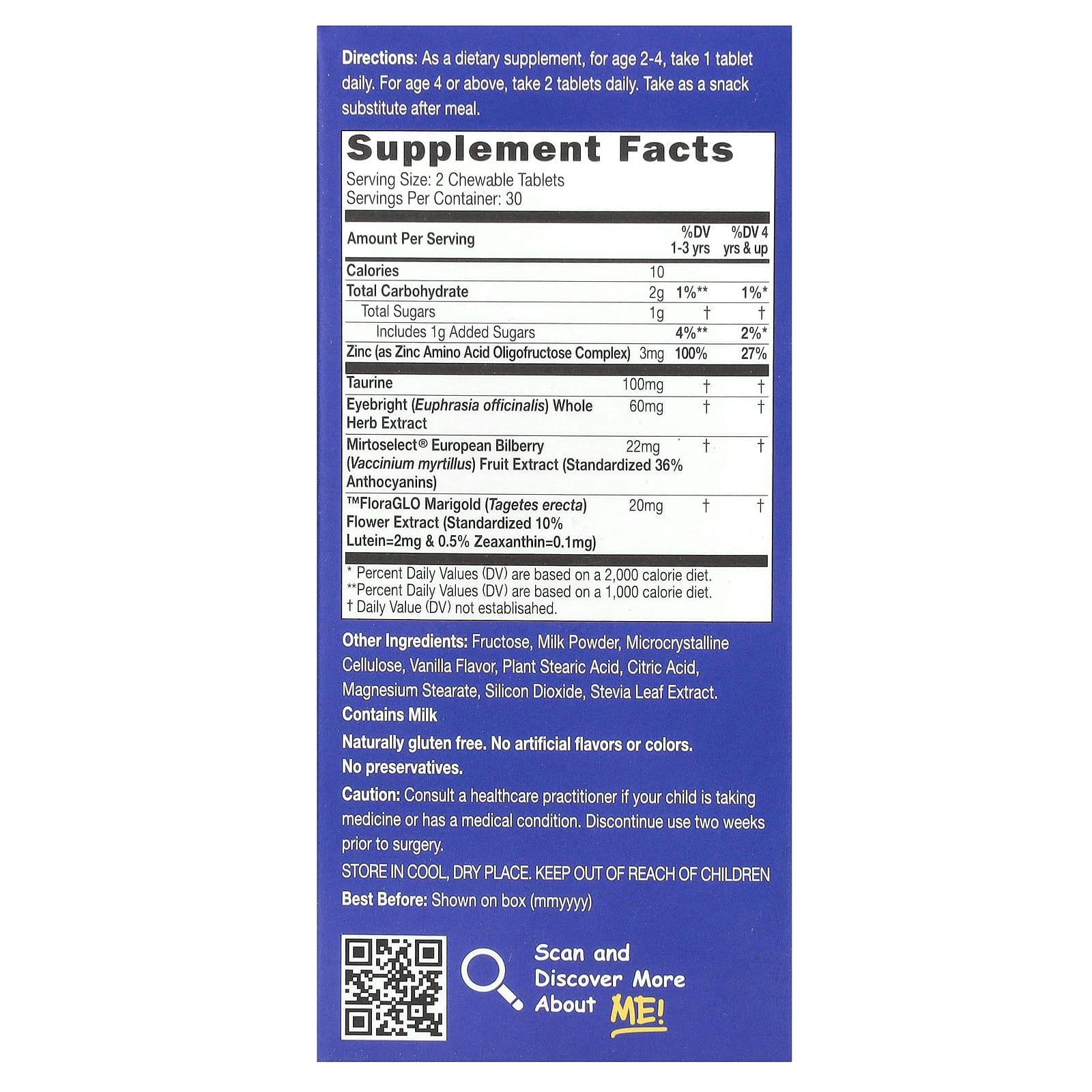 - Especificamente formulado com Taurina e Zinco para promover a visão saudável das crianças.