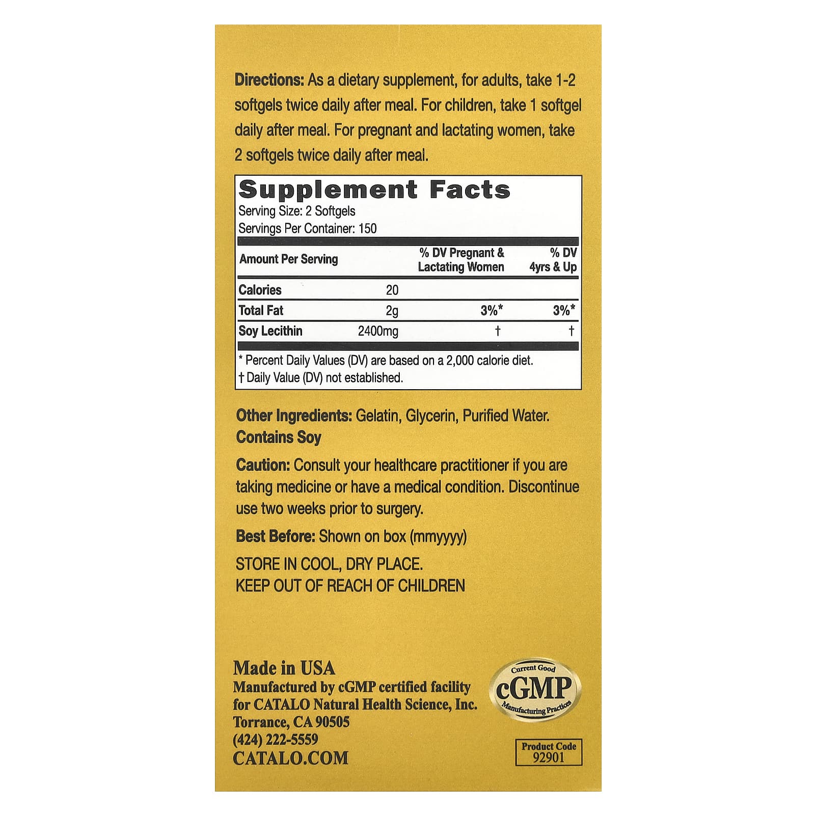 CATALO Lecitina de Soja Extra 300 Cápsulas Softgel (1.200 mg por Cápsula Softgel) – CATALO Suplementos Fosfolipídeos Lecitina.