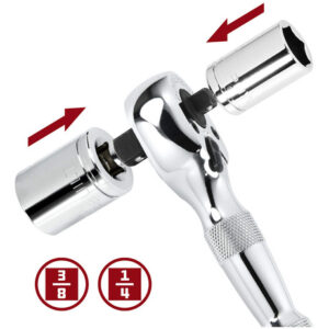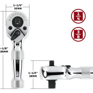 Powerbuilt Stubby Ratchet, Dual Head Ratchet, 1/4 Inch and 3/8 Inch Drive, Reversible Switch, 72 Tooth, Small Tight Space – 640931 – Made to be the most reliable tools in the market today – Tool solutions for most all situations – Built to exceed tool standards – Dual drive sizes – one side has 1/4-Inch square drive and the other side has 3/8-Inch square drive – Stubby length works great in tight spaces – Reversible 72 tooth ratchet mechanisms – Chrome vanadium construction – Meets or exceeds ANSI standards. Lifetime warranty