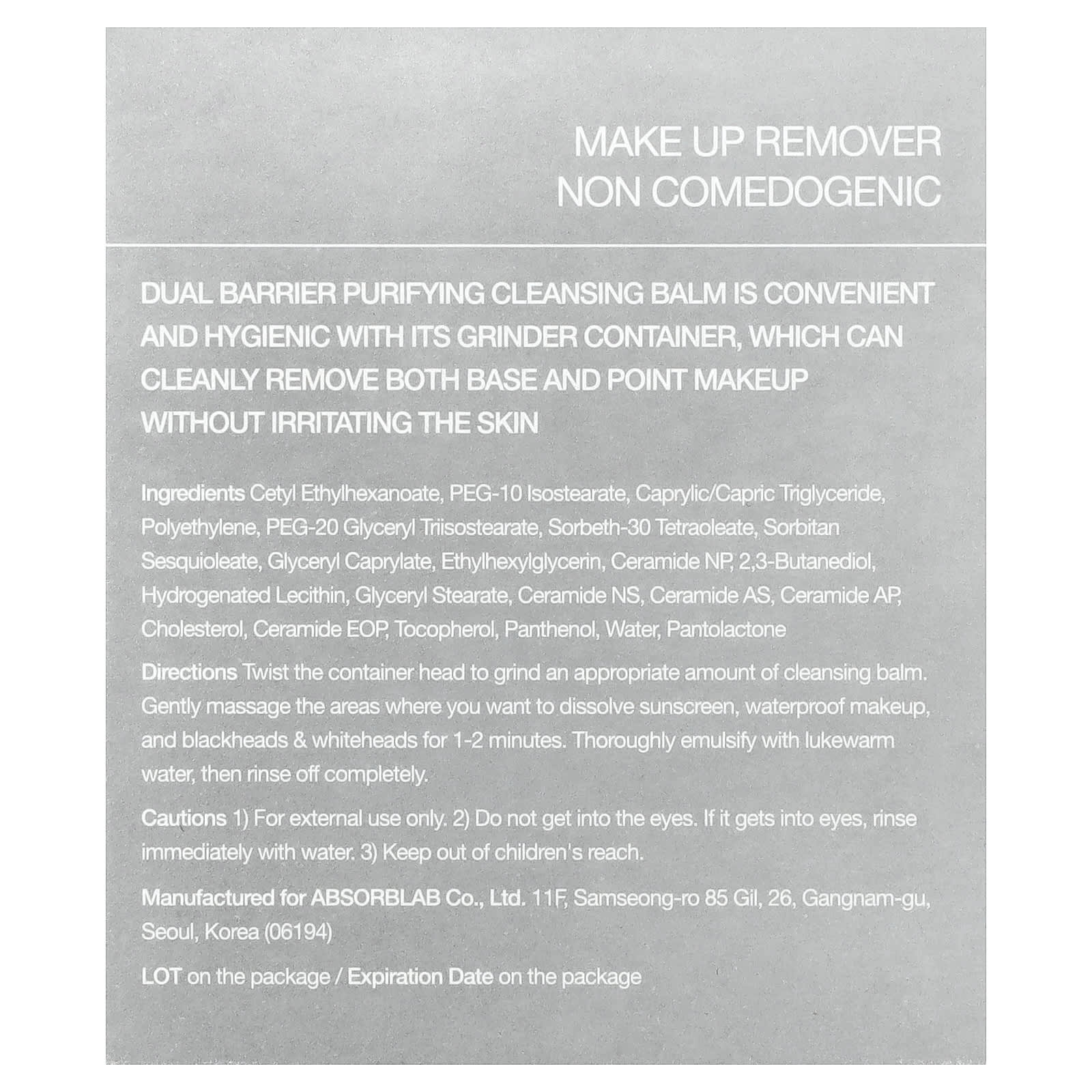 O bálsamo de limpeza purificante de dupla barreira é prático e higiênico com seu recipiente com moedor, que pode remover a maquiagem de base e de ponta sem irritar a pele.