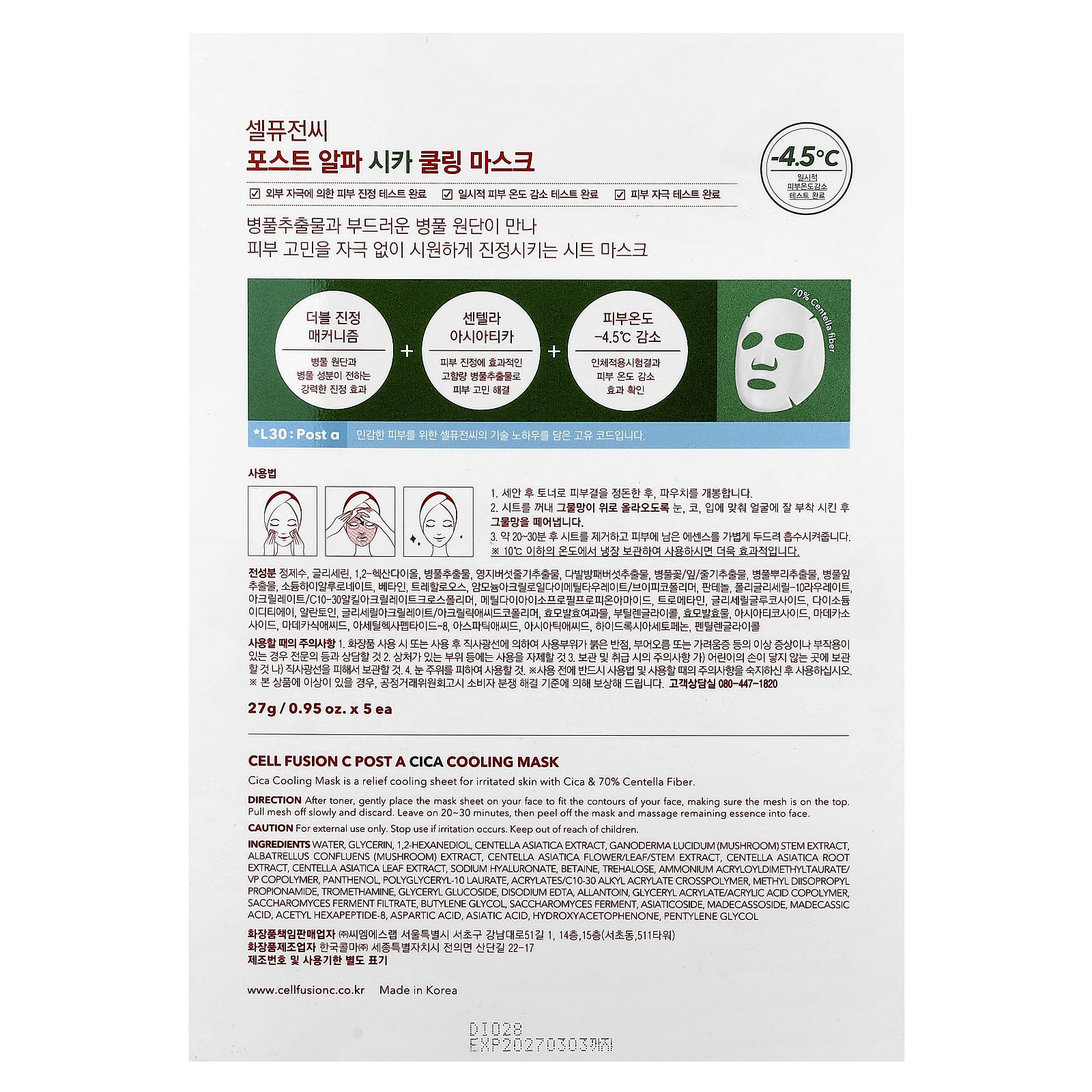 Cell Fusion C Máscara Refrescante de Cica 5 Folhas 27 g (095 oz) – Cell Fusion C Beleza Máscaras Faciais de Beleza Máscaras Faciais Máscaras em folha K-Beauty.