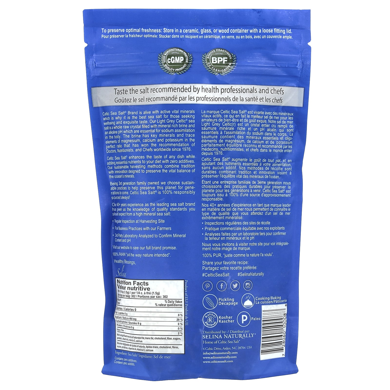 Sendo a 3ª geração de uma propriedade familiar, escolhemos práticas sustentáveis para ajudar a preservar este planeta para as gerações futuras. Celtic Sea Salt® é fornecido com total responsabilidade, sempre!