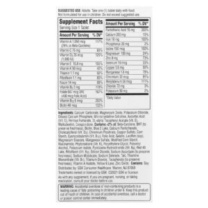 Carbonato de cálcio, óxido de magnésio, cloreto de potássio, fosfato de cálcio dibásico, celulose microcristalina, ácido ascórbico (vit. C), fumarato ferroso, Acetato de dextroalfatocoferol (vit. E), maltodextrina, crospovidona. Contém <2% de: betacaroteno, bht (para preservar o frescor), biotina, azul de indigotina laca de alumínio, pantotenato de cálcio, colecalciferol (vit. D3), picolinato de cromo, sulfato de cobre, amido de milho, cianocobalamina (vit. B12), ácido fólico, gelatina, lecitina (soja), estearato de magnésio, sulfato de manganês, amido de milho modificado, nicotinamida, fitomenadiona (vit. K), macrogol, álcool polivinílico, iodeto de potássio, cloridrato de piridoxina (vit. B6), vermelho 40 laca de alumínio, riboflavina (vit. B2), dióxido de silício, ascorbato de sódio (para preservar o frescor), molibdato de sódio, selenato de sódio, talco, mononitrato de tiamina (vit. B1), dióxido de titânio, tocoferóis (para preservar o frescor), acetato de vitamina A, amarelo crepúsculo laca de alumínio, óxido de zinco.