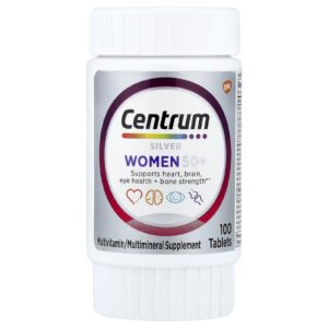 Centrum Multivitamínico Silver Women 50+ 100 Comprimidos – Centrum Suplementos Vitaminas Multivitamínicos Multivitamínicos para Idosos Minerais Suplementos Multiminerais.