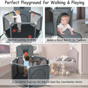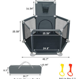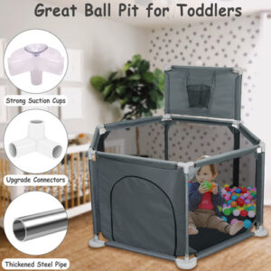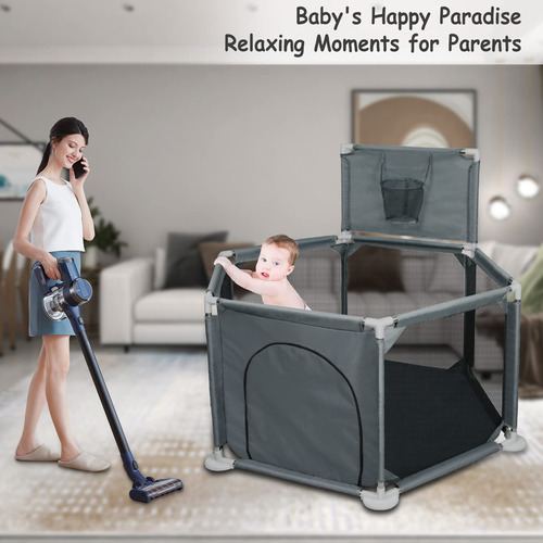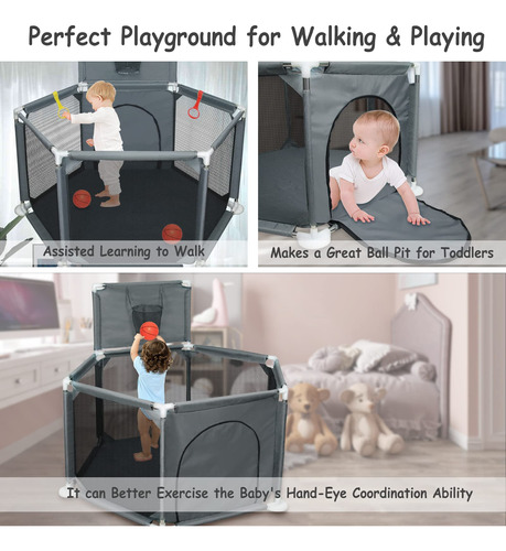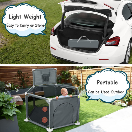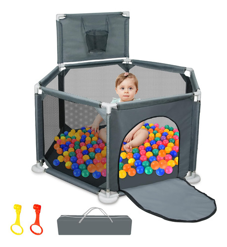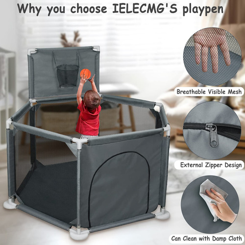 Cercadinho infantil para bebês e crianças pequenas, pátio de recreação dobrável de 50" x 50", interno e externo, caneta de brincar Safety Baby Activity Center com malha respirável e cesta de basquete, cinza (não inclui bolas) — Espaço de jogo seguro e antiderrapante, cercadinho pequeno Ielecmg para bebês e crianças pequenas com material de tecido oxford totalmente ecológico resistente ao desgaste, malha de tecidos fortes e respirável, cachimbos grossos, atualizado e antiderrapante ventosas e ângulo de inclinação interno de 6 painéis mantêm o cercadinho resistente, que são difíceis de mover ou tombar. A ventosa antiderrapante tem mais sucção do que as ventosas comuns e é muito firme. – Visão total de 360 graus e zíper externo. Nosso uso de canetas esféricas para bebês possui paredes de malha macia e respirável que permitem que você fique de olho em seu bebê com facilidade e o bebê também pode ver a mãe de vários lados, fazendo com que se sinta confortável e seguro. O bebê também pode se deitar e dormir. O design externo com zíper evita que o bebê saia acidentalmente. – Projetado com cesta de basquete e anel de puxar. O anel puxável para cercadinho ajuda o bebê a aprender a ficar em pé e andar. Quando o bebê fica um pouco mais velho, ele pode praticar mini basquete na cerca do cercadinho. Você pode brincar com eles ou deixar seus bebês brincarem livremente, os pais podem soltar as mãos e fazer suas próprias coisas. Esta área de recreação com cerca para bebês é um espaço muito seguro e independente para seu anjinho. – Portátil e fácil de montar Nosso cercadinho dobrável é fácil de desmontar e montar (sem necessidade de ferramentas). Você pode configurar este pátio de recreação para bebês facilmente em alguns minutos. Com uma bolsa fornecida, fácil de guardar e transportar, você pode usar o cercadinho portátil para bebês em ambientes internos ou externos. O cercadinho com portão é fácil de limpar. Se ficar sujo, o pano pode ser lavado ou facilmente limpo, a poeira pode ser enxugada com um pano. – Cercadinho grande para bebês de 50 “x 50" x 27" para bebês e crianças pequenas, oferecendo grande espaço para crianças e seus amigos brincarem. O pacote contém 2 anéis dobráveis, 1 cercadinho para bebês (não inclui bolas), 1 bolsa de armazenamento portátil, 1 cesta de basquete e 1 manual de montagem. O cercadinho para bebês oferece ao seu filho um mundo maravilhoso para aventureiros. – Ideia de presente atenciosa e qualidade sem preocupações. Este seria um ótimo presente para seu filho, pois manterá seu bebê seguro enquanto ele se diverte. E se você está procurando um presente para novos pais, nossa caixa de bolinhas portátil dobrável para bebês também atenderá você. Para quaisquer outros problemas, entre em contato conosco. Entraremos em contato com você dentro de 12 horas até que você esteja satisfeito. (As instruções de instalação do carrinho de bebê portátil estão incluídas na embalagem.)