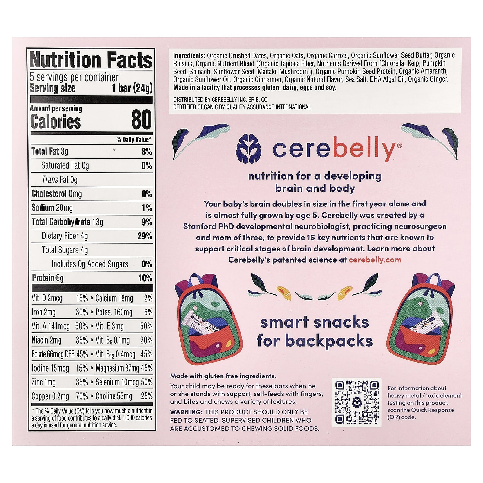 Cerebelly Barras Inteligentes Barras Orgânicas para Crianças Tâmara de Cenoura 5 Barras 24 g (084 oz) Cada – Cerebelly Bebês e Crianças Alimentação Lanches para Bebês e Crianças.