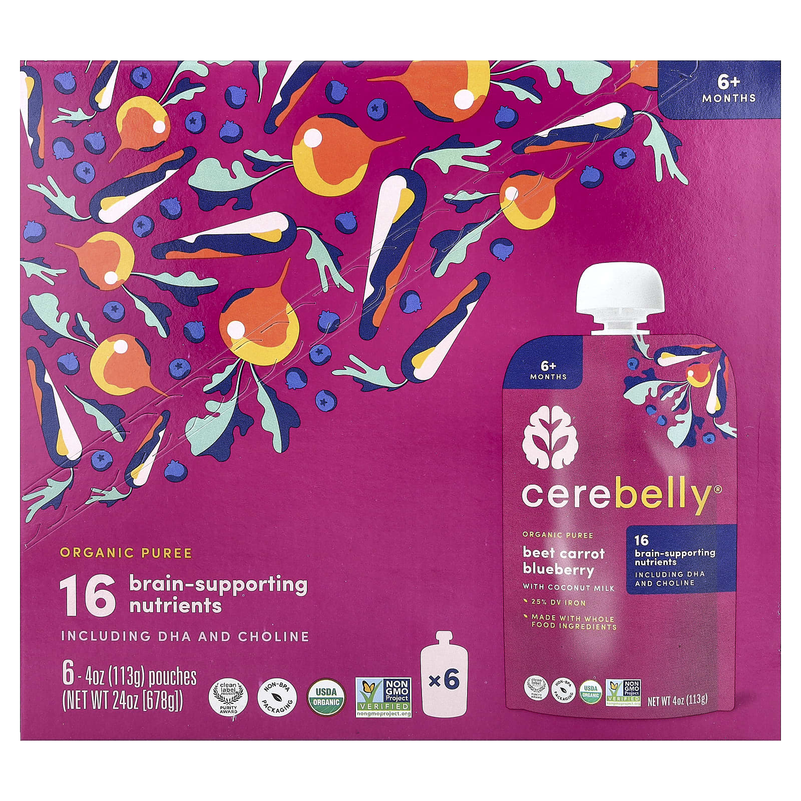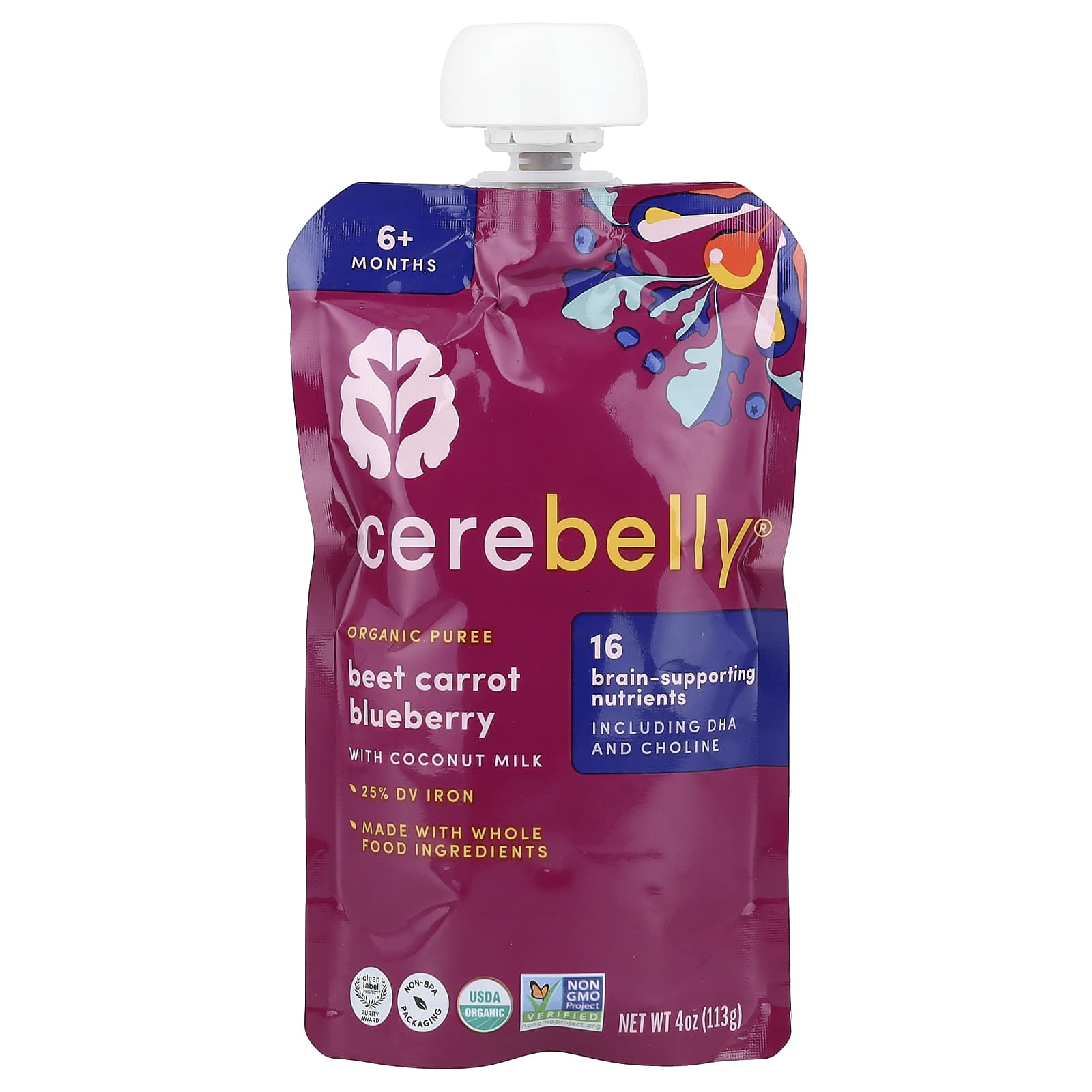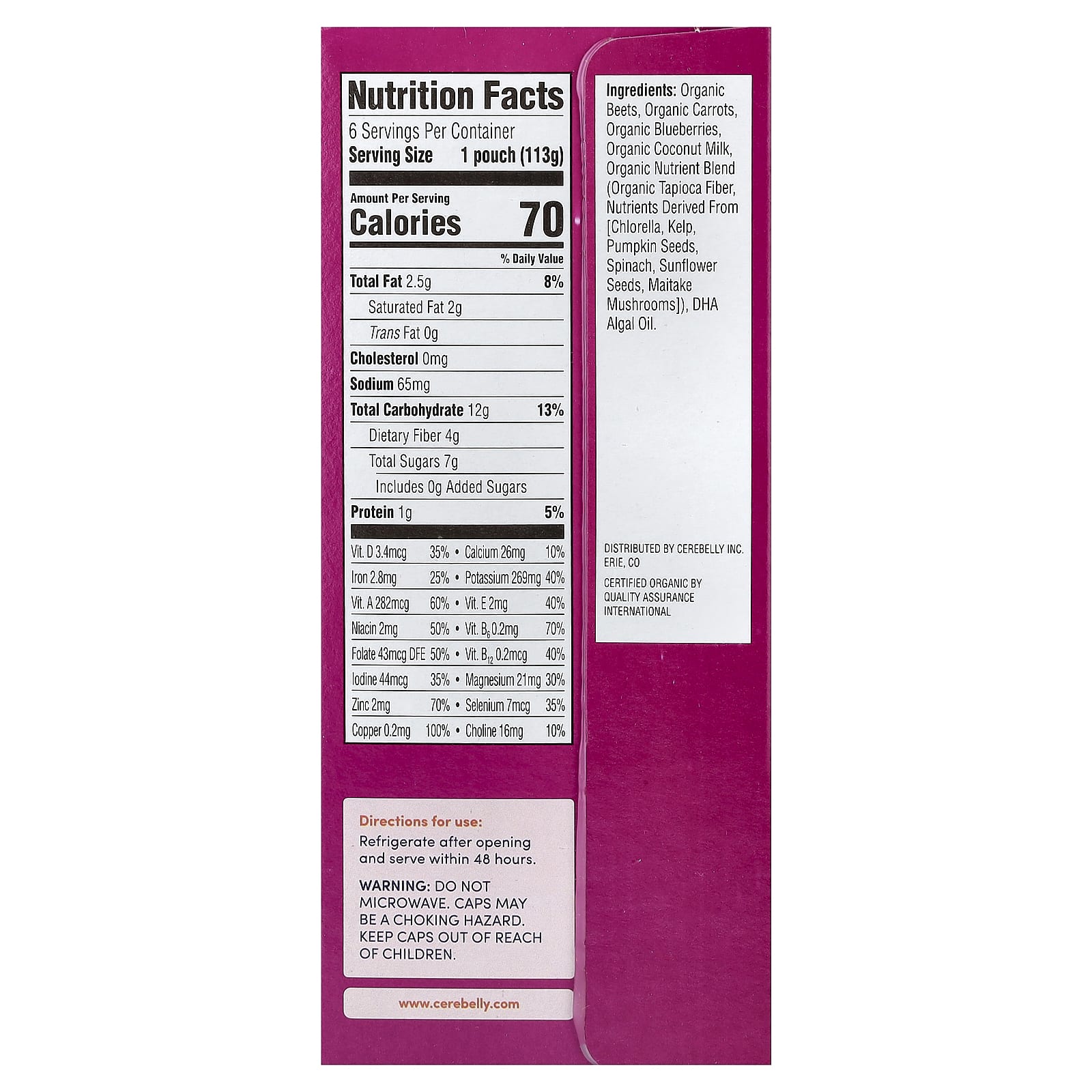 Cerebelly Purê Orgânico Mais de 6 Meses Beterraba Cenoura Mirtilo com Leite de Coco 6 Sachês 113 g (4 oz) Cada – Cerebelly Bebês e Crianças Alimentação Saquinhos, Purês e Refeições.