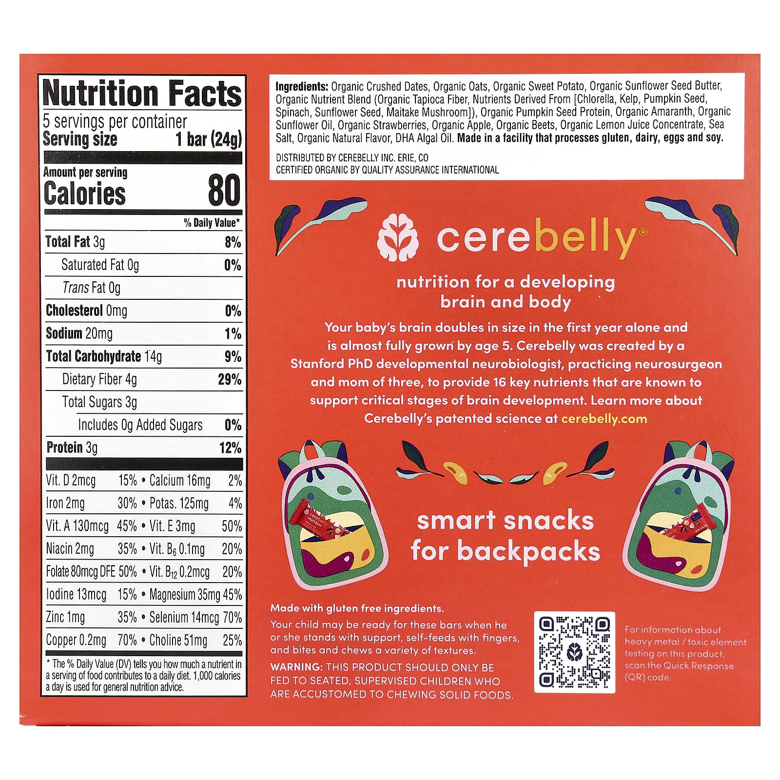 Cerebelly Smart Bars Barras Orgânicas para Bebês Morango e Beterraba 5 Barras 24 g (084 oz) Cada – Cerebelly Bebês e Crianças Alimentação Lanches para Bebês e Crianças.