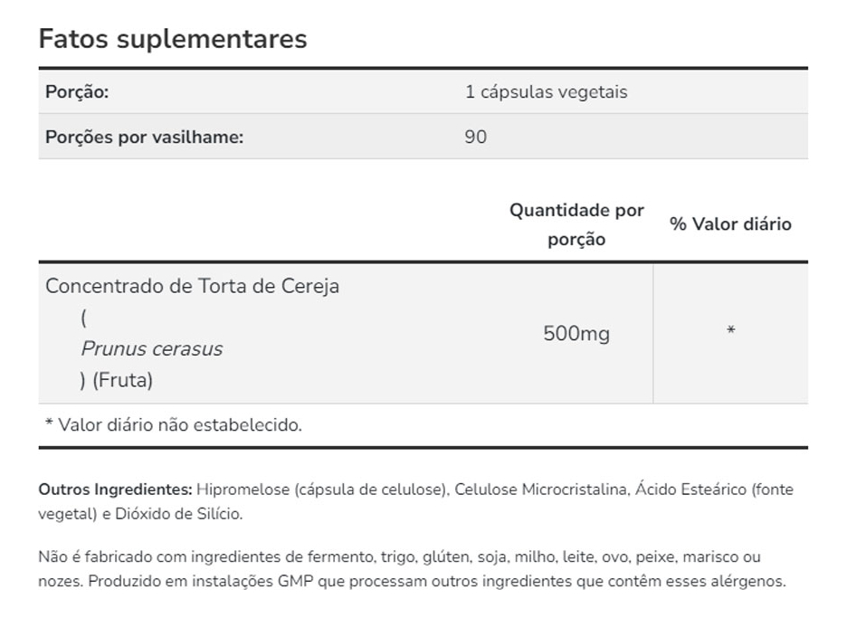 2. Conveniência em Cápsulas: A apresentação em cápsulas de 500mg facilita o consumo do extrato de Cereja Azeda, proporcionando dosagem precisa e ingestão fácil. Este formato é ideal para aqueles que buscam a praticidade de um suplemento diário sem complicações.