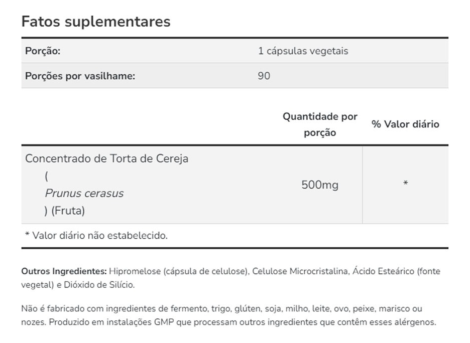 2. Conveniência em Cápsulas: A apresentação em cápsulas de 500mg facilita o consumo do extrato de Cereja Azeda, proporcionando dosagem precisa e ingestão fácil. Este formato é ideal para aqueles que buscam a praticidade de um suplemento diário sem complicações.
