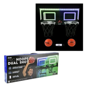 Franklin Sports 2 Player Mini Basketball Hoop – Indoor Double Shootout Hoop Set With Ball for Bedroom and Office – TWO PLAYER SHOOTOUT: This over-the-door basketball game comes with two hoops so you and a friend can shoot it out against one another for ultimate bragging rights – BUILT-IN SCOREBOARD: The built-in LED scoreboard keeps track of time and score so you can keep focused on hitting your shots. – DURABLE CONSTRUCTION: This mini basket comes with a shatterproof backboard and (2) 9.5 spring-loaded steel rims that are built to stand up to threes and slam dunks – MINI BASKETBALLS INCLUDED: Includes (2) 5 mini basketballs so you and a friend can play at the same time. Ages 6+ – FITS ANY STANDARD DOOR: This set is made to hang easily off the back of any standard size door and is made with foam-backed hooks to prevent damage to the door during play