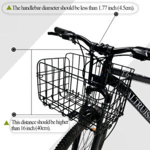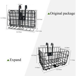 Mount on bike: handle bar or carrier Material: Stainless Steel Shape: Foldable Max. Load Capacity: 10KGS Mount: Parts or screws enclosed Size: Approx. 33*21.5*20CM Net weight: Approx 1300g Packing List: 1 PC Bicycle Basket Attention: Please handle with care when you fold or unfold the basket, not to clamp fingers or hands. – Reminder: The product arrives in a folded state, please keep the side closed when opening the clip to avoid damage caused by the sudden opening of both sides. Thanks for the valuable feedback from the customer, hope this strong little guy makes the perfect gift. – Suitable for most folding and mountain bikes: fits most folding bikes and mountain bikes. The handlebar diameter should be less than 1.77 inch (4.5cm). In order to prevent the bottom of the basket touch the bike tire, Please make sure the distance between the handlebar and the bicycle tire is higher than 16 inch (40cm). – Designed for various scenarios: Multi-Purpose for pets, books, cargo, For work, school, shopping, cycling, For adults, teenagers, students, For road bike, folding bike, mountain bike, It can act as front handlebar basket, or rear basket. – The bike basket is folded originally: Just push the folded basket a little bit and lift the buckle- the foldable basket will open. Designed to carry large loads thanks to its stout legs, cargo bands, and heavy duty handlebar clamps. Folding size: 12.99*11.8*1.97 inches. – A practical bicycle accessory: As a heavy load bike basket , the stability is really beyond its tiny body. You should really give this tough guy a shot , its gonna be a good friend on your way to work . Besides , We provide a 100% satisfaction after sales service , If you have any problem or dissatisfaction with our product , just get in touch with us and we will get it done , hope you can enjoy it.