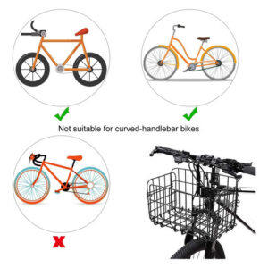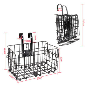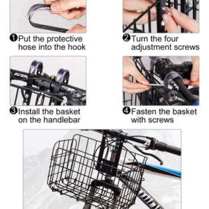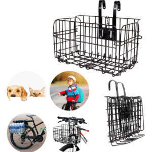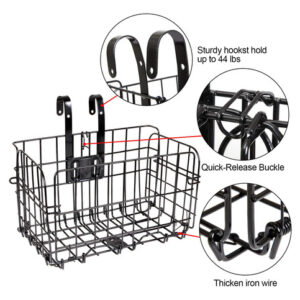 Why Choose Us? Thicken iron wire study than original bicycle basket, weather-resistant and thicken iron wire which means itll long lasting. Throw a slew of school supplies and study materials in your basket for your ride to class. Or use this versatile bicycle basket as a grocery basket at your local market. When this folding basket is installed correctly, It will not tip down, stowing away your items safely. Folded and removed, easy and quick on/off, easy to insert and remove from basket, and simple to adjust. No rattling and noise, the folding bike basket work well and gently. Specification: Color: Black Material: Thicken iron wire Folding Size: 9.05*7.48*1.18in/3*19*23CM Open Size: 13*8.78*7.6in/34*22.3*19.3CM Maximum capacity: 44 lbs(20KG) Maintenance method: Wipe clean with a damp cloth How to Install: 1: Lift the buckle at the top to unfold the basket 2: Put the basket hook into the plastic tube 3: Position the basket onto your bike frame Package list: 1 x Rear bicycle basket 2 x Screws and nuts 2 x Rubber sleeve for 2 hooks Quality Guarantee Even if our bicycle basket was not compatible with your bicycle or If you arent totally satisfied, then just send them back to us, we will still give you a full refund, no questions asked. If you have any installation problems, do not hesitate to email us, we would be delighted to help you and we will reply as soon as possible. – Sturdy & Weather-ResistantThicken iron wire sturdy than original bicycle basket, hold up to 44 lbs(20KG), gloss black finish with powder-coated make it better weather-resistant, anti-rust and corrosion resistance. Weather-resistant and thicken iron wire which means itll long lasting. – Quick On/OffCan be folded to a smaller size for convenient storage while not needed. When your inner gourmet is satisfied, replace the basket on the handlebars of your bike and get on your way. – Easy InstallationPush the bike basket a little bit and then lift the buckle, the foldable basket will open automatically. Quick on/off which is storage & portable bike basket. – Versatile Bicycle Basket Large capacity enough to place such as books, bags, pets, grocery, flower and so on. Yet not only apply in bicycle, but also use in room, try to use your imagination to develop more functions. – Fit ForFront bike basket just design for most Folding and Mountain bikes (The handlebar diameter should be less than 1.77 inch /4.5cm), Rear bicycle basket great for match all models and type bicycle.