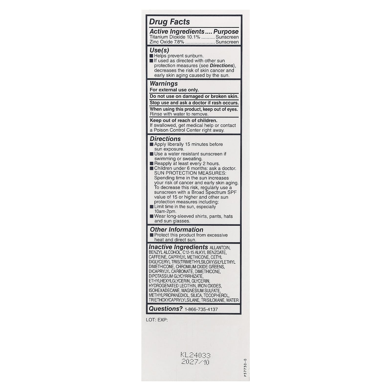 | Ingredientes InativosAlantoína, álcool benzílico, C12-15 alkyl benzoate, cafeína, caprylyl methicone, cetyl diglyceryl tris(trimethylsiloxy) silyletil dimethicone, verdes de óxido de cromo, dicaprylyl carbonate, dimethicone, dipotassium glycyrrhizate, ethylhexylglycerin, glicerina, lecitina hidrogenada, óxidos de ferro, isOHexadecane, sulfato de magnésio, methylpropanediol, dióxido de silício, tocoferol, triethoxycaprylylsilane, trisiloxane, água. | |