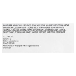 Sodium cocoyl isethionate, ácido esteárico, seboato de sódio, água, sodium cocoate, estearato de sódio, glicerina, cloreto de sódio, peg-20, dióxido de titânio, sodium isethionate, fragrância, petrolato, gliconato de sódio, avocadato de butilo, lactato de isostearoil sódio, sucrose cocoate, tetrasodium glutamate diacetate, tocoferol, bht, azul da prússia.
