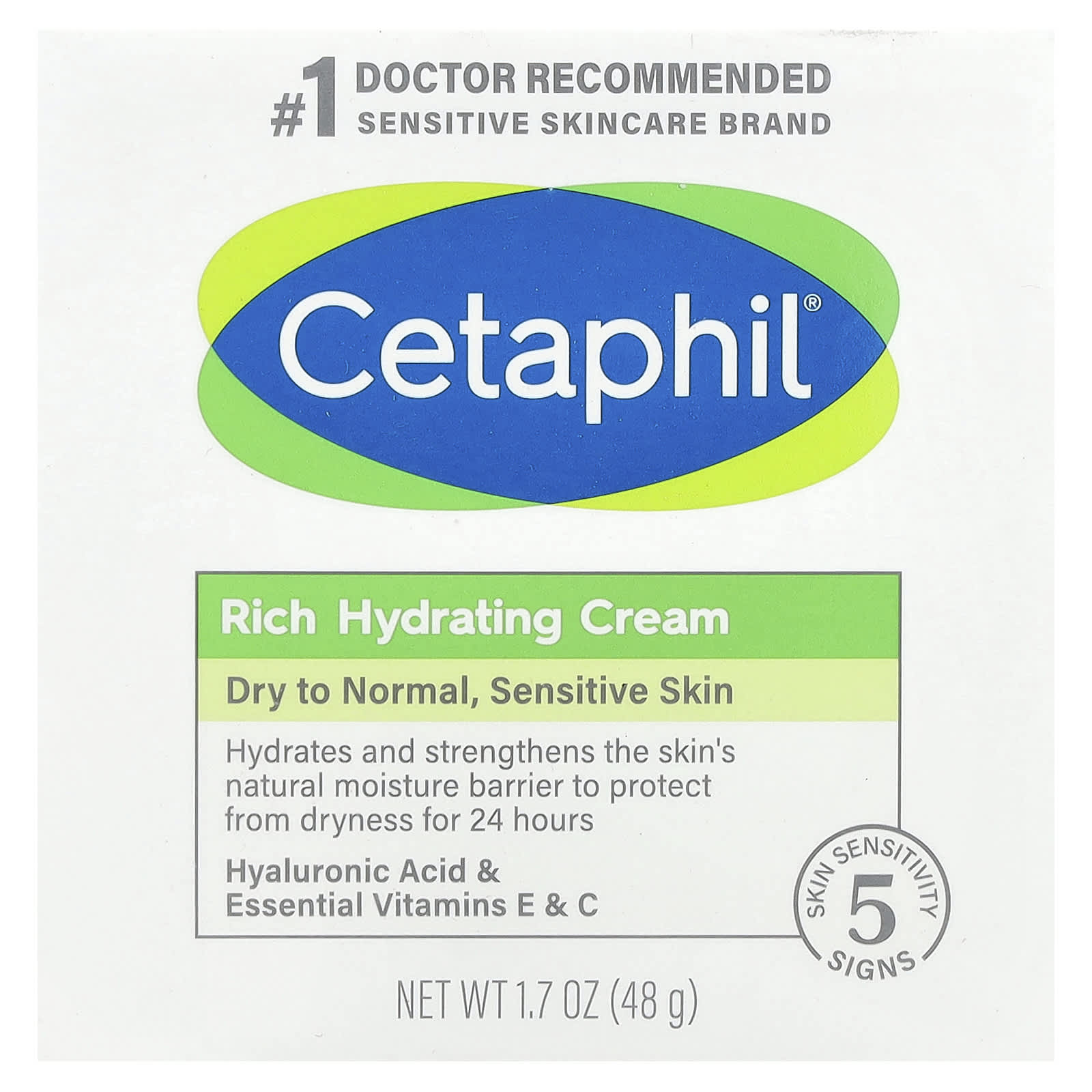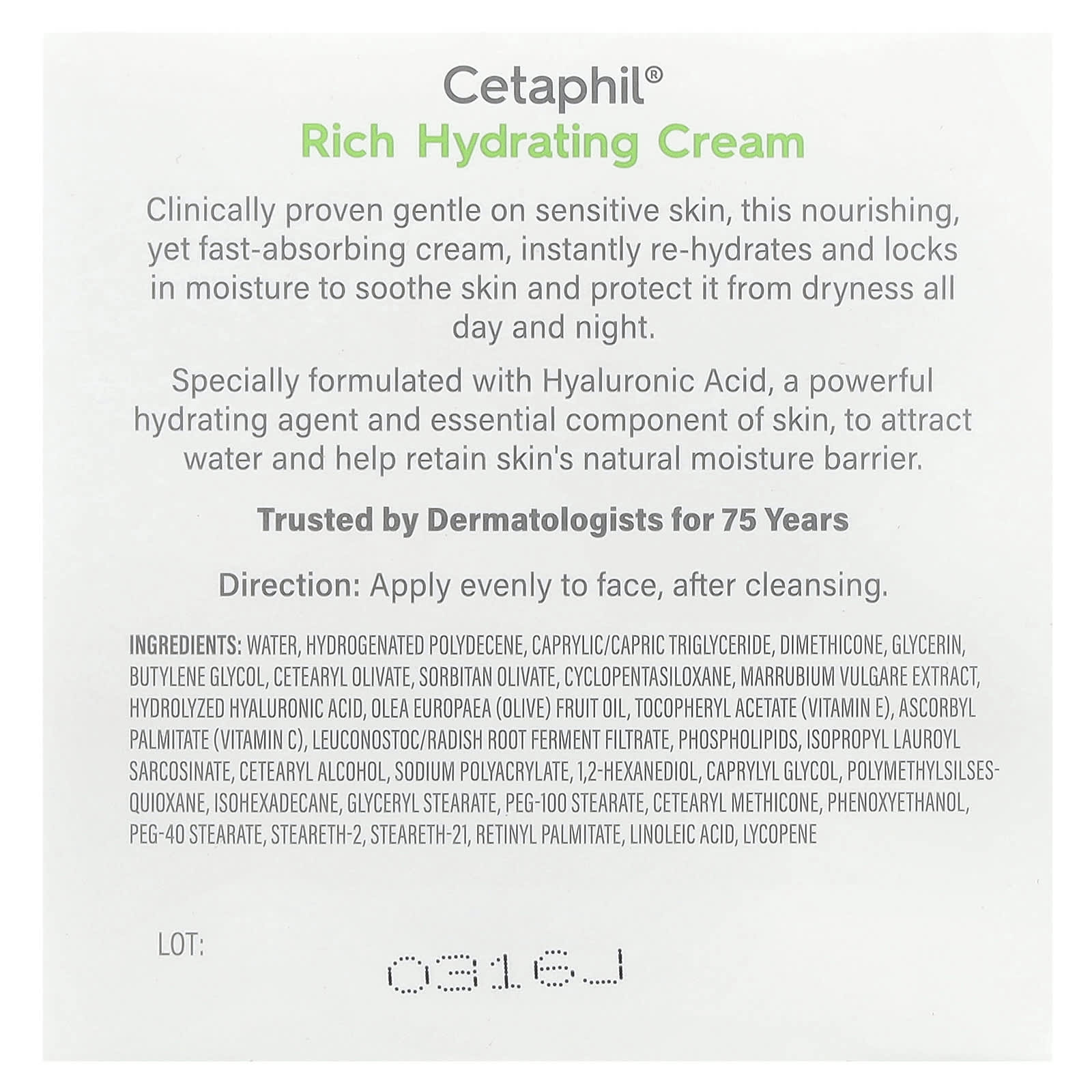 Cetaphil Creme Hidratante Rico com Ácido Hialurônico 48 g (17 oz) – Cetaphil Beleza Beleza por Ingrediente Cuidado para a pele com Vitamina E Hidratantes Faciais e Cremes Hidratantes e cremes noturnos.