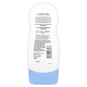 A fórmula sem lágrimas limpa e hidrata a pele e os cabelos delicados do bebê.