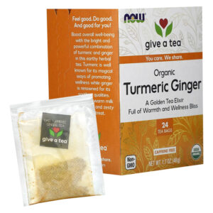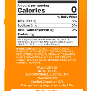 Principal Suporte: Desfrute do equilíbrio perfeito entre a cúrcuma e o gengibre neste chá Now Foods, projetado para oferecer uma experiência revitalizante e saborosa.
