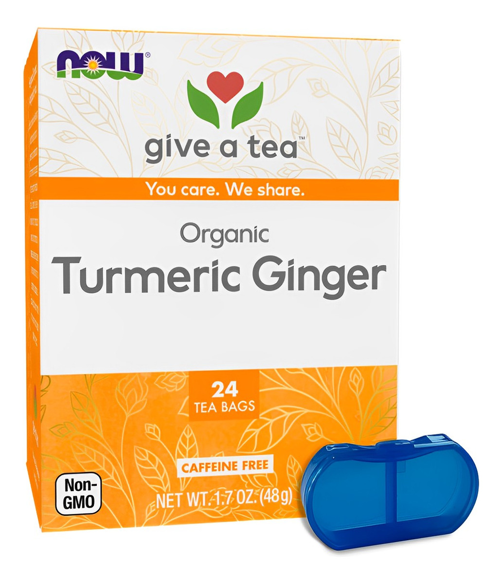Chá Cúrcuma e Gengibre Now Pacote 24 Sachês Importado + Porta Cápsulas