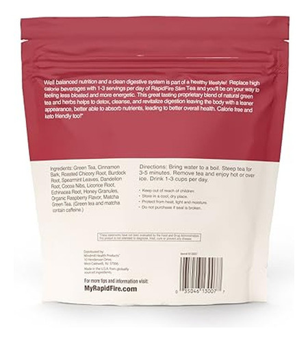 Sacos de chá Rapid Fire Slim, uma mistura de ervas e vegetais naturais que promovem energia e digestão e apoiam o metabolismo, 14 porções. Chá