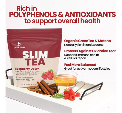 Feito com ingredientes orgânicos, não transgênicos, vegetais, sem glúten e cetônicos, o chá Rapid Fire Slim é perfeito para um estilo de vida limpo e equilibrado.