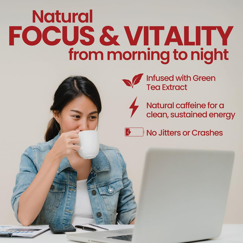 mistura funcional de rooibos orgânicos, rosa mosqueta e raiz de gengibre auxilia na digestão e no bem-estar intestinal, ajudando você se sente leve após as refeições. Rico em polifenóis e antioxidantes de ingredientes premium, como matcha e orgânicos chá verde, protege seu corpo do estresse oxidativo diário.