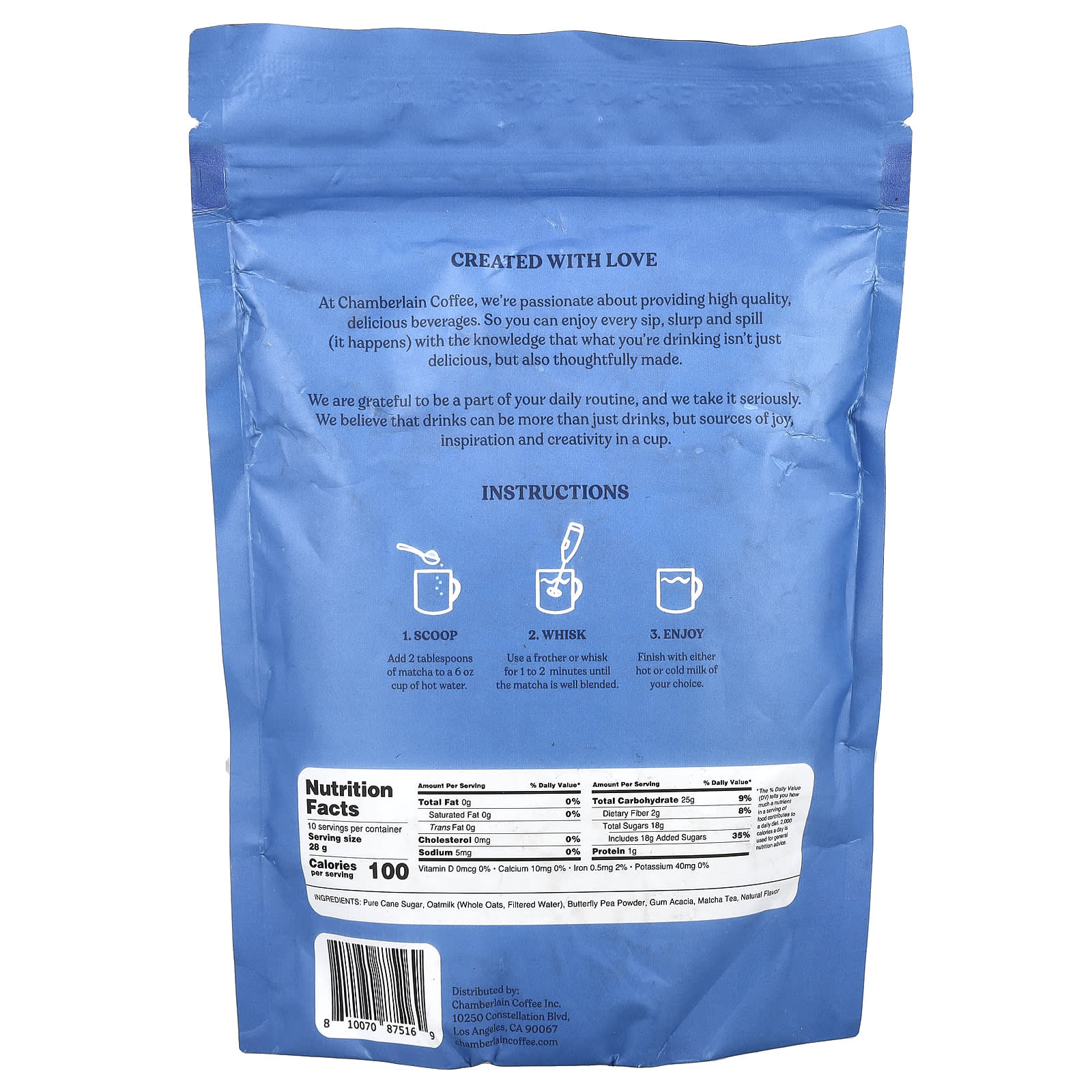 Chamberlain Coffee Latte Matcha Azul com Leite de Aveia 283 g (10 oz) – Chamberlain Coffee Alimentos Chás e bebidas Tea Matchá.