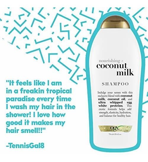Perfect for everyday use, this shampoo comes in a bottle with a volume of 750 ml, providing a generous amount to nourish your hair deeply. Say hello to stronger, hydrated, and lusciously scented hair with OGXs Nourishing Coconut Milk Shampoo.