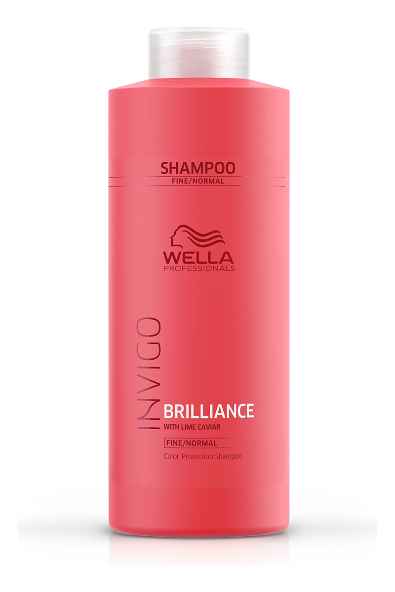 Shampoo Wella Professionals Invigo Brilliance para cabelos finos de cor normal, shampoo profissional de proteção de cores e vibração de cores, 33,8 fl oz — Shampoo com pH otimizado para retenção da cor do cabelo — Desenvolvido especialmente para cabelos coloridos finos a normais — Formulado com caviar de limão, que é conhecido por conter vários antioxidantes e vitaminas — Inclui nossa mistura exclusiva de brilho colorido, incluindo moléculas encapsuladoras de cobre que ajudam a manter a vibração — Mantenha sua cor cheia de vida