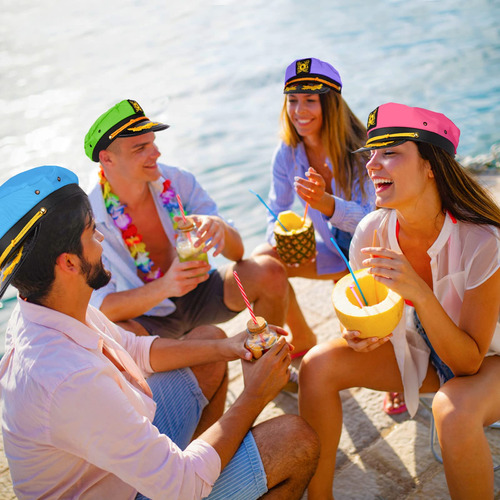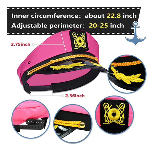 Chapéu de marinheiro dodowin Yacht Captains, pacote com 4 chapéus de marinheiro para mulheres, azul, rosa, verde, roxo, traje ajustável, chapéu de capitão de barco para par – pacote com 4 chapéus de marinheiro coloridos com emblemas bordados dourados na frente, a decoração e as cores harmoniosas são delicadas o suficiente para você criar uma festa náutica descolada com seus amigos. – Chapéu de marinheiro de capitão náutico com design colorido com cores diferentes que adicionam um toque náutico a qualquer roupa, um ótimo acessório de cruzeiro para todas as suas roupas náuticas. Azul, rosa, verde, roxo, 4 chapéus de marinheiro com design colorido, fofo e engraçado, basta compartilhar com seu amigo ou família! – O chapéu de marinheiro ajustável Captain Hats Adult é ajustável para atender a diferentes circunstâncias da cabeça. Você pode ajustá-los à firmeza confortável, ao tamanho adequado para toda a família. – Material: O chapéu de capitão é feito a granel de algodão leve de alta qualidade e couro envernizado brilhante simulado. É durável e lavável, leve e respirável, muito confortável ao usar o chapéu de capitão de iate. – Ampla aplicação. Para parecerem elegantes, os chapéus de capitão são preferíveis a uma variedade de festas: Halloween, festas à fantasia, festa de cosplay, cruzeiros em família e mais ocasiões. Use os chapéus de capitão para a festa, seja o capitão da marinha mais atraente!