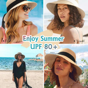 Chapéu de palha de praia feminino FURTALK UV UPF 80+, viagem, aba dobrável, chapéu UV de verão puro cáqui — O material do chapéu de sol feminino é papel, algodão e poliéster de alta qualidade, chapéus de sol de praia modernos, funcionais e estilosos para mulheres — Este chapéu de palha de praia oferece alta proteção solar UV UPF com aba cheia. A função de protetor solar torna o chapéu perfeito para uso diário como chapéu de praia em férias ou como chapéu de praia roupa, é muito fácil de usar com qualquer coisa, como vestido, biquíni ou shorts — chapéus de palha de aba perfeita para mulheres são um ótimo presente para irmã ou mãe, com faixa de suor absorvente para mantenha você fresca e confortável, evite que o suor escorra em seus olhos; e há uma alça de queixo para manter o chapéu de sol na cabeça, mesmo em dias de vento, protegendo contra perdas – Um chapéu de verão embalável e dobrável, fácil de transportar, não importa na bolsa ou mala para viagens ou férias; muitas cores clássicas e fantásticas foram projetadas para diferentes preferências – Existem dois tamanhos oferecidos. O tamanho M-L é recomendado para mulheres normais tamanho com circunferência da cabeça 21,65-22,44" (55-57 cm) e o tamanho L-XL é recomendado para cabeças grandes com circunferência da cabeça em torno de 22,44- 23,22" (57-59 cm); além disso, o tamanho do chapéu pode ser ajustado com uma tira de velcro dentro da faixa de suor absorvente